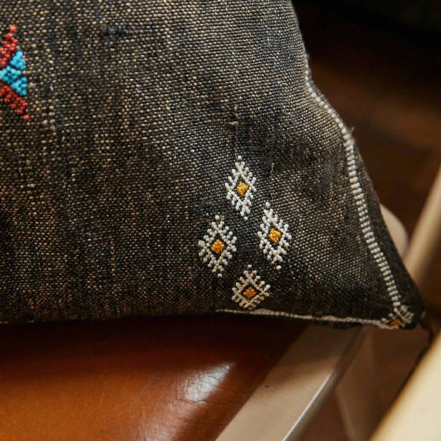 This cactus silk pillow is truly one of a kind. The cactus is grown in the Saharan desert, found under a hot Moroccan sun, the women undertake the painstaking work of extracting the vegan fiber thread by thread only before dyeing it using hand crushed natural dyes via Indigo mud cloth techniques.