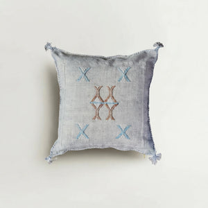 Made of cactus Silk, our Princess Sabra pillow is crafted using traditional practices. The cactus is grown in the Saharan desert, found under a hot Moroccan sun, the women undertake the painstaking work of extracting the vegan fiber thread by thread only before dyeing it using hand crushed natural dyes via Indigo mud cloth techniques.