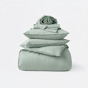 Purchase a green organic cotton percale bed set, airy to the touch, Wake up every morning feeling fresh and rejuvenated! Percale bedding typically features a matte finish and a crisp, cool feel that gets softer with every wash. The yarns go one-under-one-over, creating a tight-knit, super smooth and durable structure. It’s lightweight and breathable, perfect for summer nights or winter nights when the heating is on.