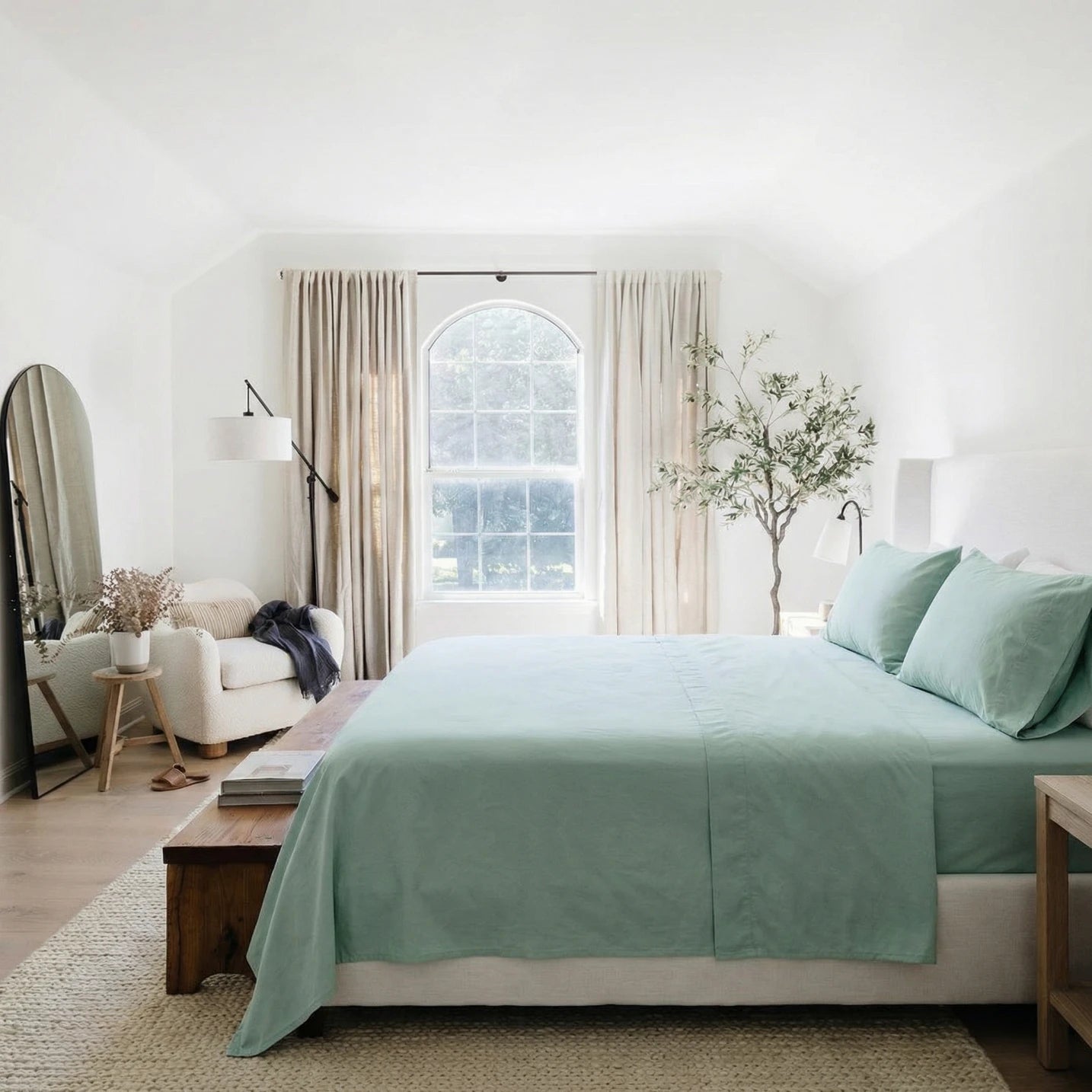 Organic Percale Bed Set - Frosty Green